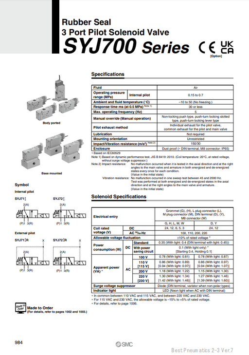 [SMC Pneumatics]Solenoid Valve SYJ714-5LZ-02