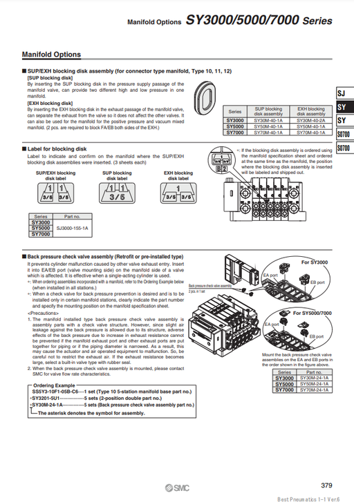 [SMC Pneumatics]SUP.EXH Block Disk Assembly SY30M-40-1A