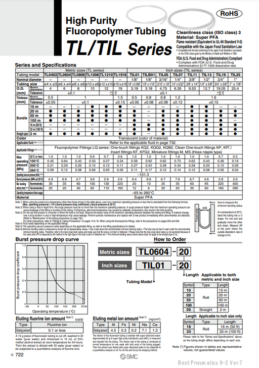 [SMC Pneumatics]Fluoropolymer Tubing TIL07-2S