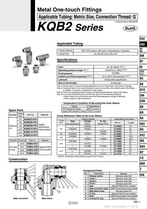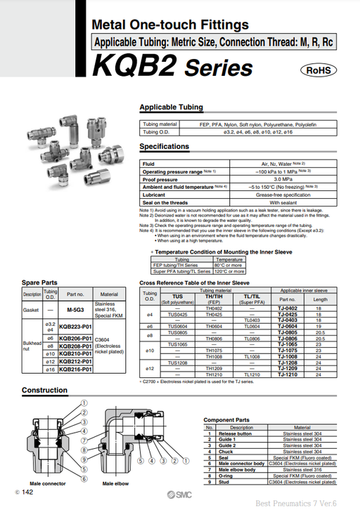 [SMC Pneumatics]Metal One-touch Fittings KQB2E06-G02