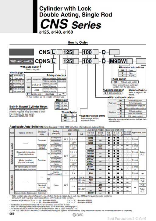 [SMC Pneumatics]Lock Cylinder CDNSG160-100-D