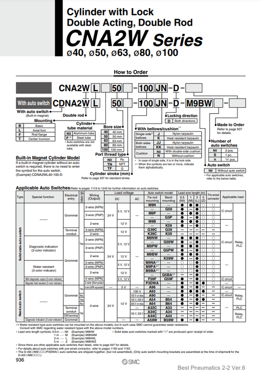 [SMC Pneumatics]Lock Cylinder CDNA2T100-600-D