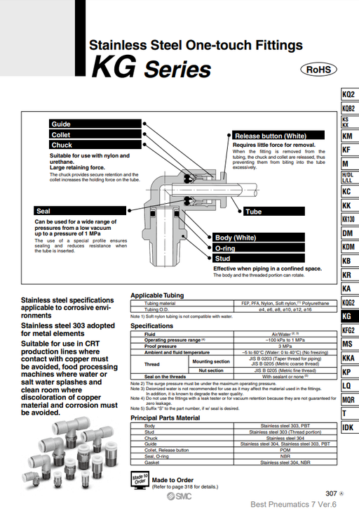 [SMC Pneumatics]One-touch Fittings KGE08-01