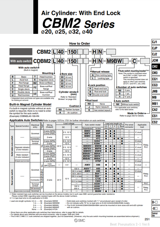 [SMC Pneumatics]End Lock Cylinder CBM2D32-75-RN