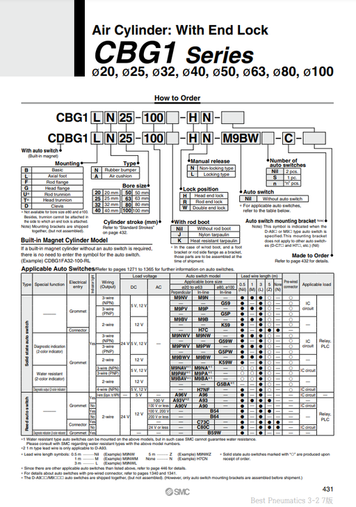 [SMC Pneumatics]End Lock Cylinder CDBG1BN100-25-HN