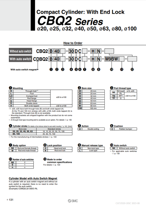 [SMC Pneumatics]End Lock Cylinder CDBM2B40-30A-HN