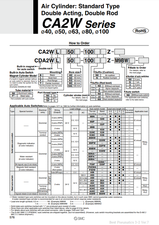 [SMC Pneumatics]Air Cylinder CA2L80V-1000Z