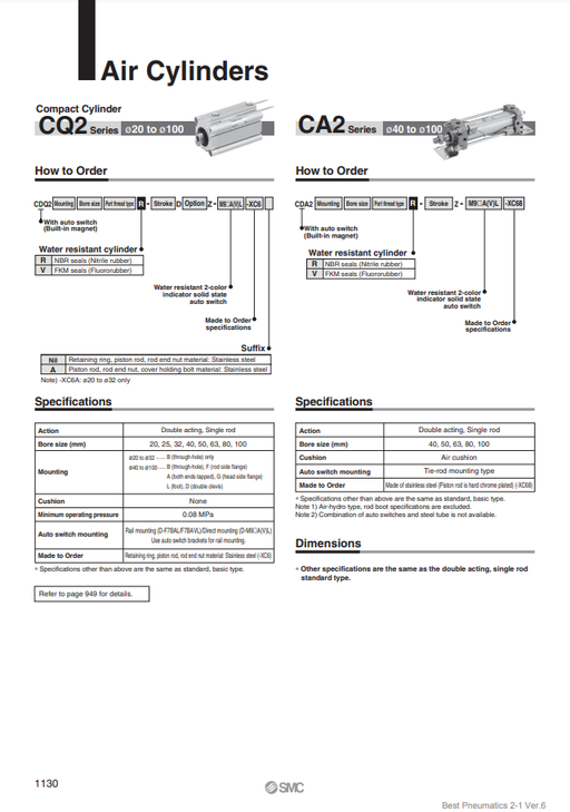 [SMC Pneumatics]Air Cylinder CDA2B80-130Z