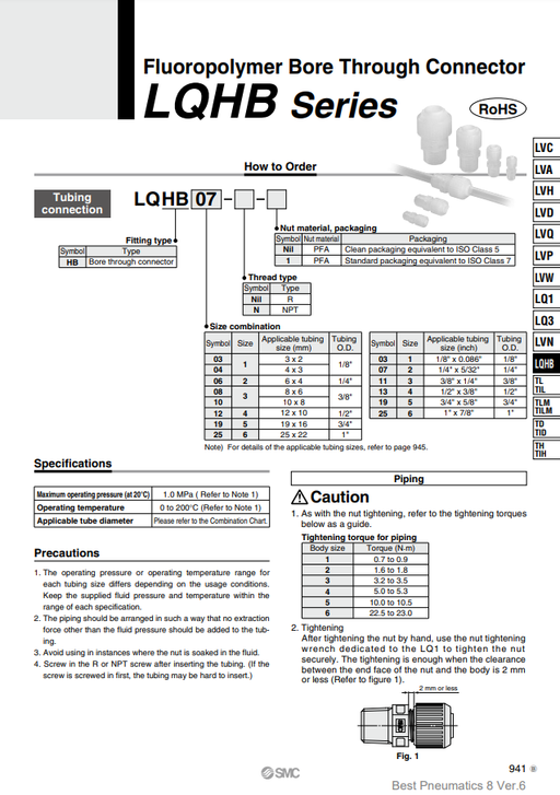 [SMC Pneumatics]Fluoropolymer Bore Through Connector LQHB19