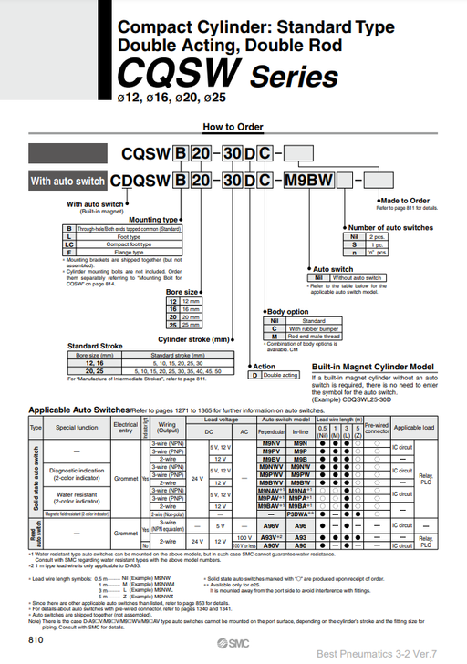 [SMC Pneumatics]Compact Cylinder CQSWB20-10DM