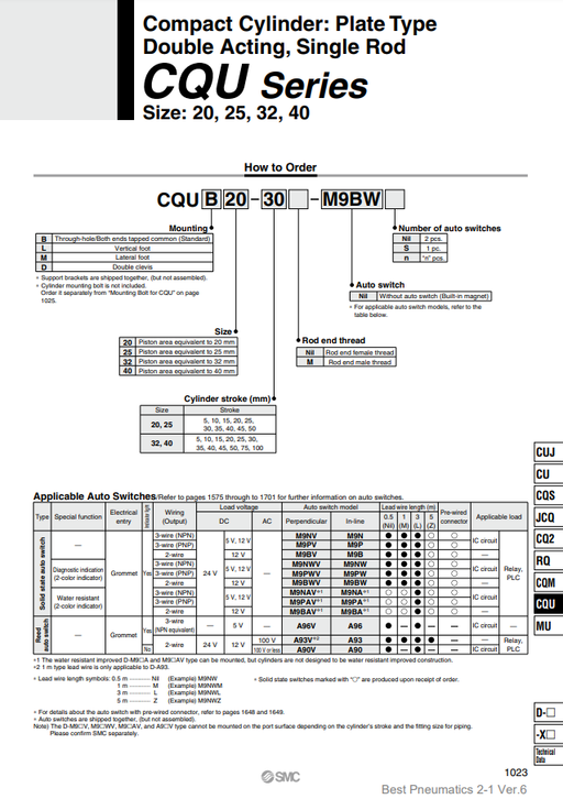 [SMC Pneumatics]Compact Cylinder CQUB20-10M