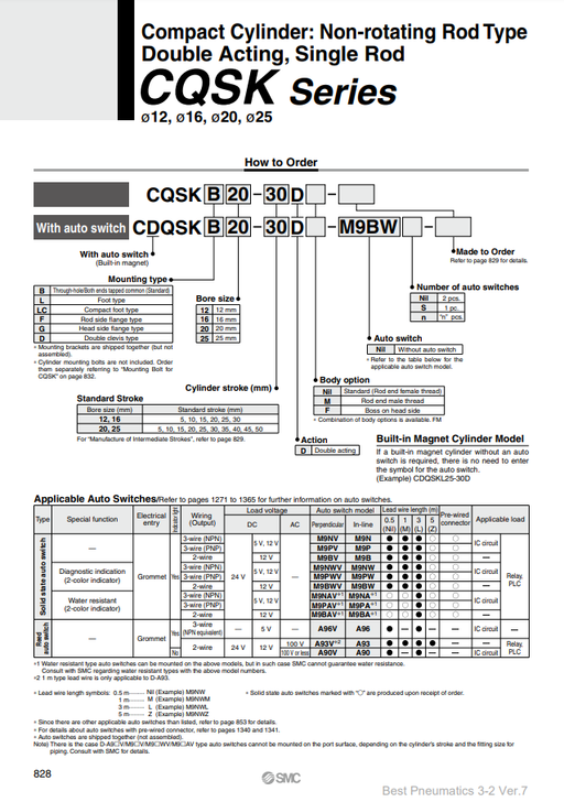 [SMC Pneumatics]Compact Cylinder CQSKB25-30D