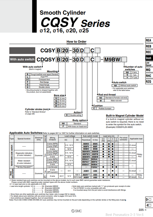 [SMC Pneumatics]Smooth Cylinder CQSYB12-5DC