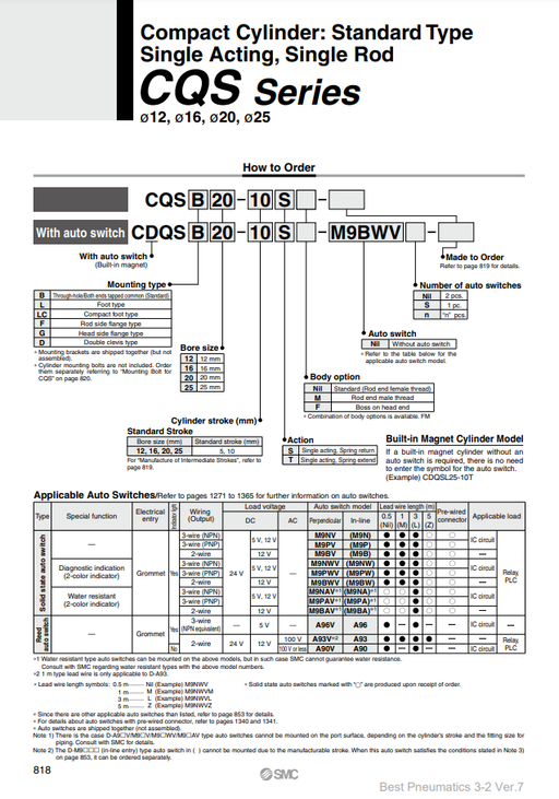 [SMC Pneumatics]Compact Cylinder CQSB12-5SM
