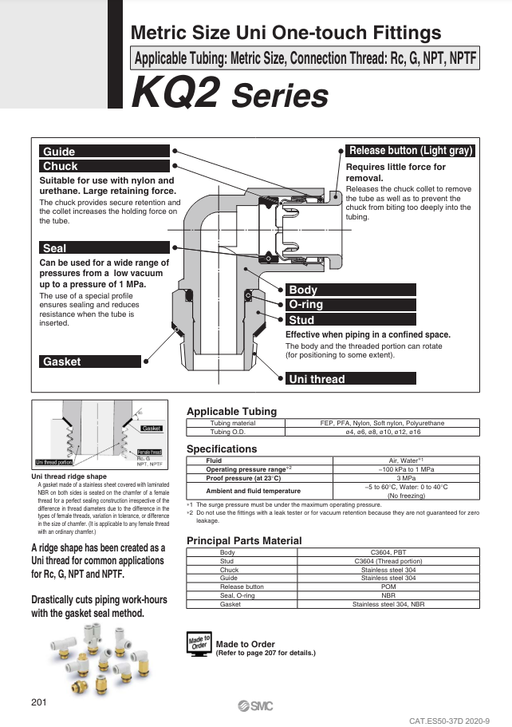 [SMC Pneumatics]One-touch Fitting KQ2D06-00A1