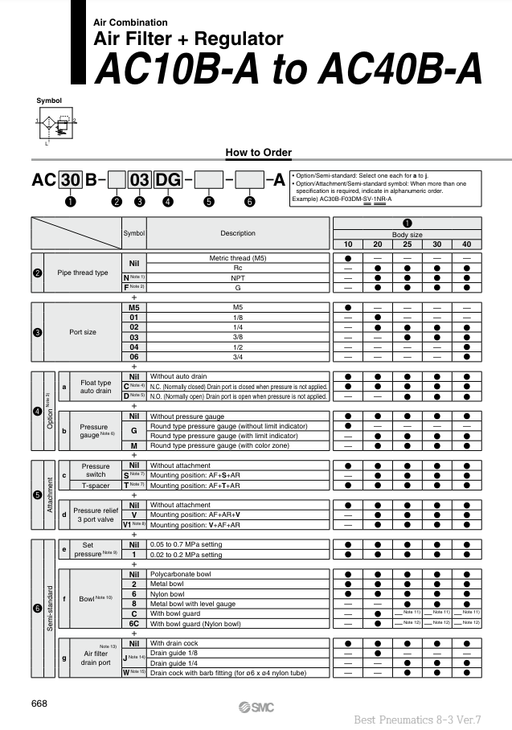 [SMC Pneumatics]Air Combination AC30B-03G-T-A