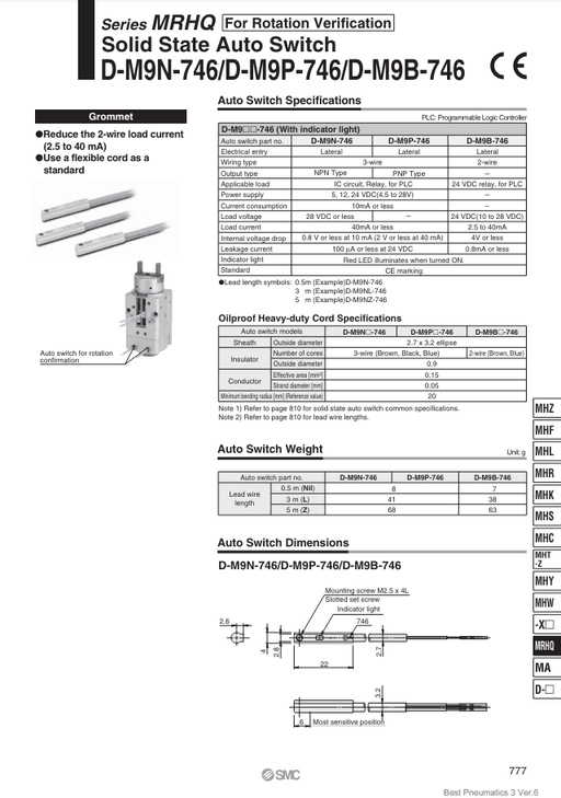 [SMC Pneumatics]Auto Switch D-M9BL-746