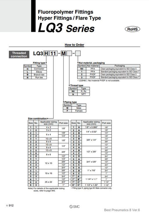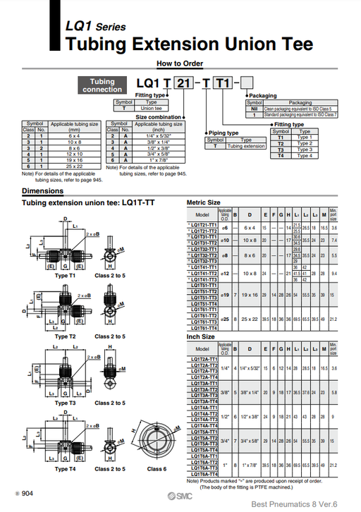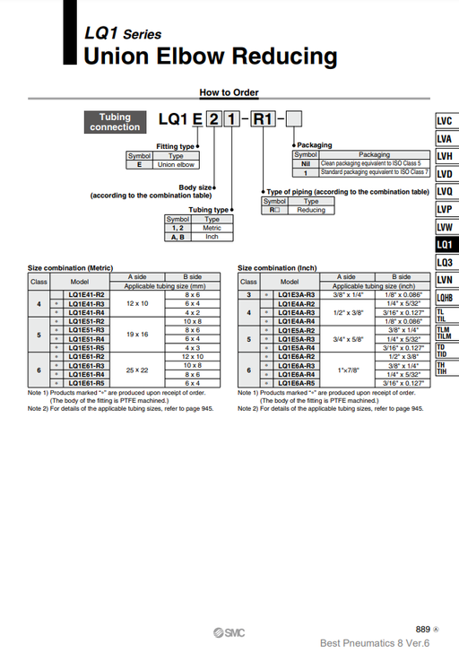 [SMC Pneumatics]Fluoropolymer Fittings LQ1T6B6A