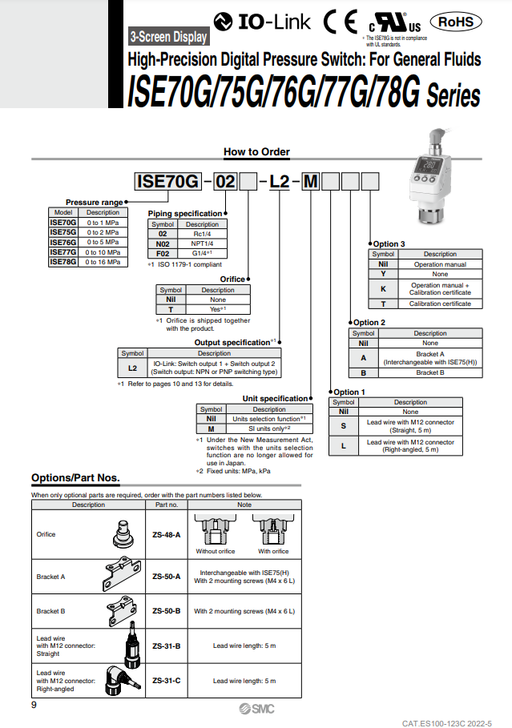 [SMC Pneumatics]Digital Pressure Switch ISE77G-02-L2-S