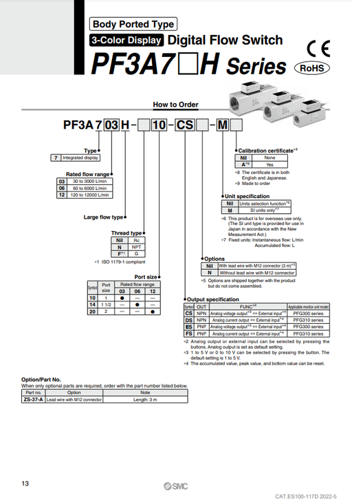 [SMC Pneumatics]Digital Flow Switch PF3A706H-14-DS-A