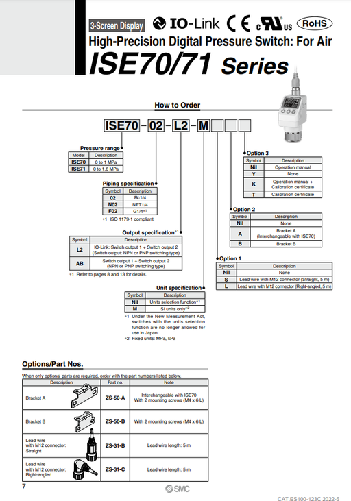 [SMC Pneumatics]Digital Pressure Switch ISE70-02-L2-S