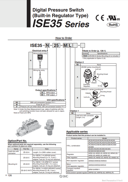 [SMC Pneumatics]Digital Pressure Switch ISE35-N-25-A